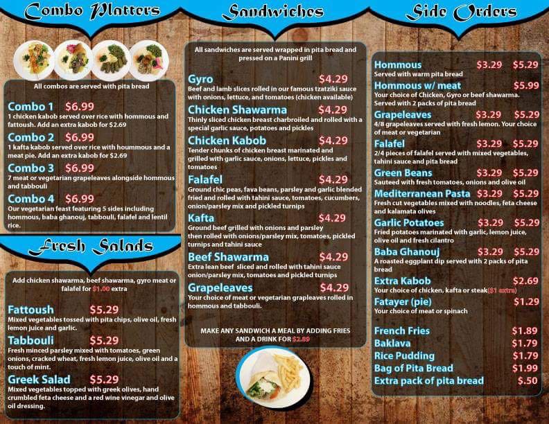 Beef and lamb slices rolled in our famous tzatziki sauce with onions, lettuce, and tomatoes. Wrapped in fresh pita then toasted on panini grill.