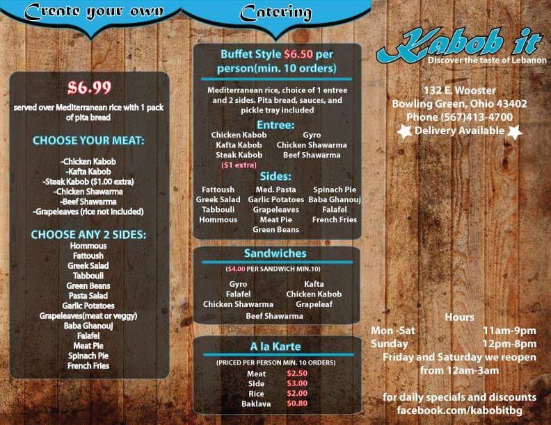 At Kabob It Bowling Green, you'll find a menu brimming with flavorful, freshly prepared dishes that are perfect for any occasion. From savory kabobs to satisfying sides, each bite offers a delightful experience that will keep you coming back for more. The Kabob It Bowling Green Menu features a variety of grilled meats, vegetables, and sauces, offering something for everyone, whether you're craving a hearty meal or a lighter option. The warm, casual atmosphere of the restaurant makes it an ideal spot for a quick lunch, a casual dinner, or even a special celebration. With every dish cooked to perfection, Kabob It promises to deliver delicious flavors in every bite.